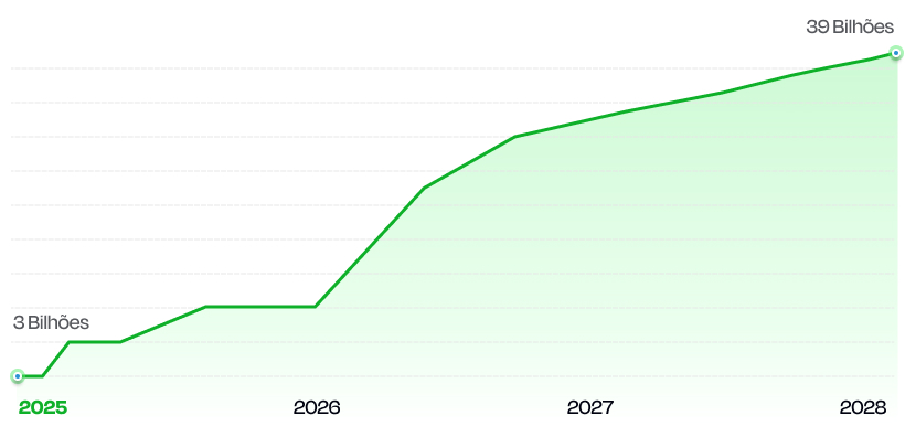A real é que eu estou falando do mercado que tem a expectativa de movimentar R$3 BILHÕES logo agora com a sua chegada, com uma previsão de apenas crescer cada vez mais – atingindo até R$39 BILHÕES até 2028…